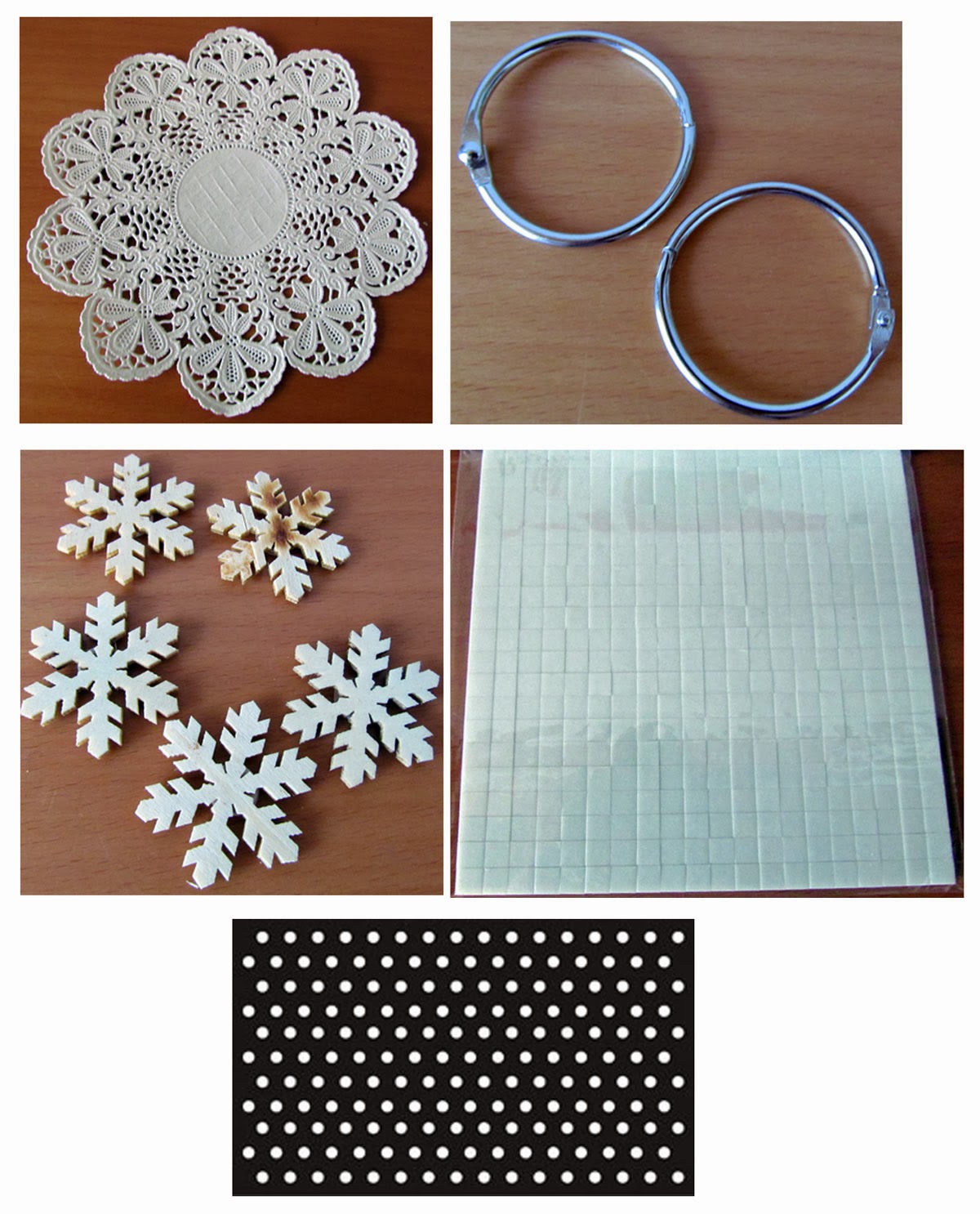 5x Wood snowflakes