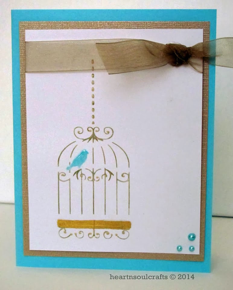 I used aqua for "A" - Angie and my Plus one color was gold. I used a stencil from the Crafter's Workshop for the cage & the bird. And I used glossy accents over the bird. More detail on my blog.