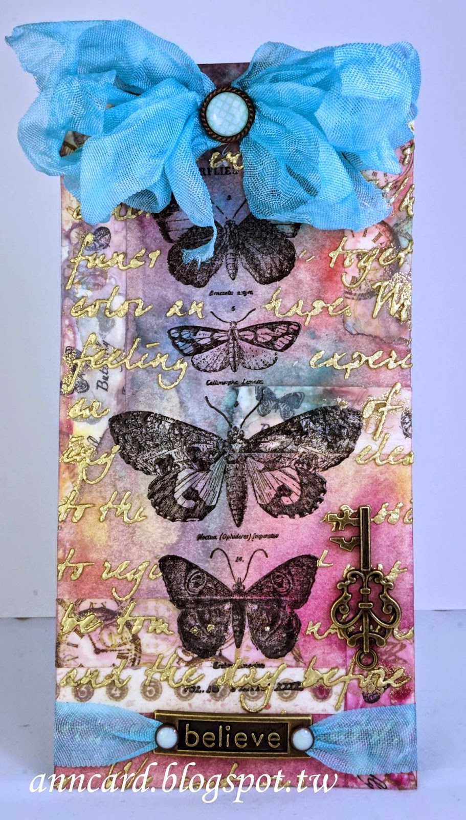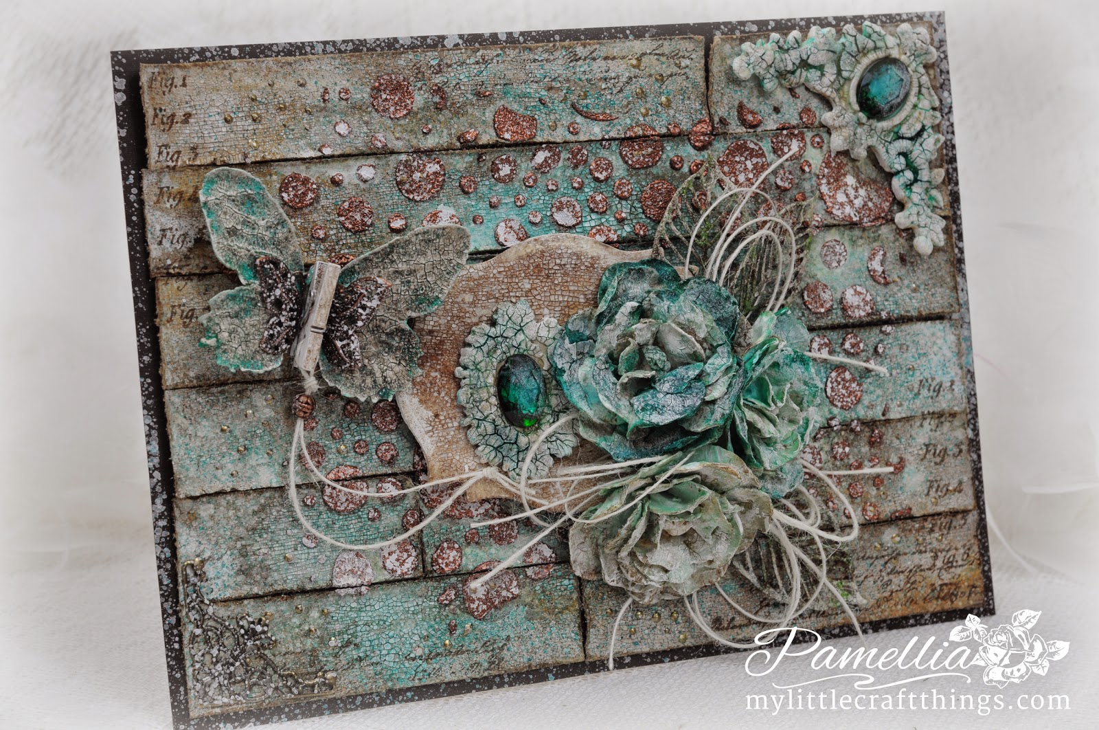 Once when i was just a kid, I had a wonderful idea for a craft project, I pushed the living room curtains to one end so they were folded up like an accordion, then I got out the scissors and cut myself out the most fabulous paper doll chain. Oh boy, did I ever get in trouble, but I had so much fun! Not much has changed since then. I still have fun making crafts out of anything I can get my hands on, I just don't get in trouble any more! lol Whenever possible, I try and make every aspect of my project by hand. I prefer to make my own backgrounds and flowers, I dye my own ribbons, make my own texture pastes and crackle paint, I even make some of my embellishments out of clay. I find such a sense of accomplishment in knowing that I made it myself.
