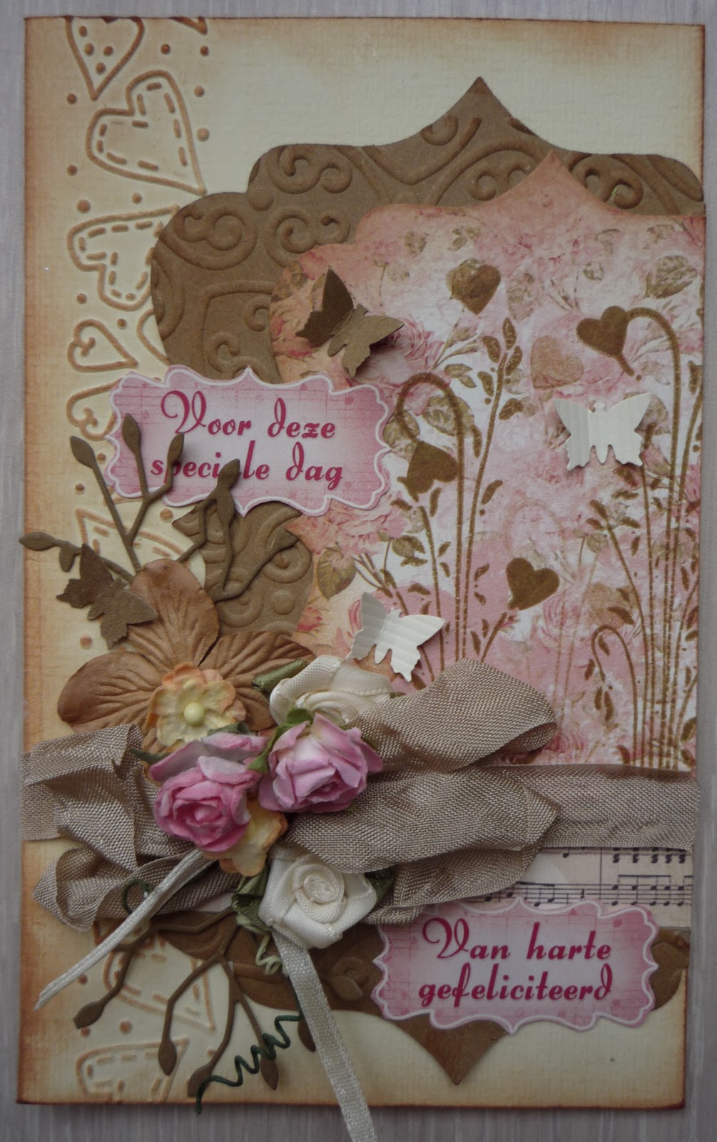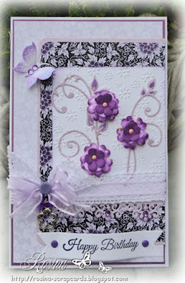 If I had to pick my favorite style that would definitely be Shabby Chic, but I try to have variety in my work. I also base my creation on a person that will be receiving my card; what are their interests, style and favorite colors. It makes me so happy to see big smile on someone’s face when they receive my handmade card. I make my own flowers for card embellishing, from daisies to roses and am still learning a lot about all the different ways to create textures and details on a project.
