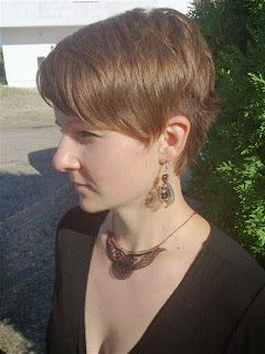 I create with natural materials which I collect on long walks, with recycling materials, origami patterns, zentangling... The last part of my creating opus is made in technic of Idrijska lace, most of all lace jewelry.